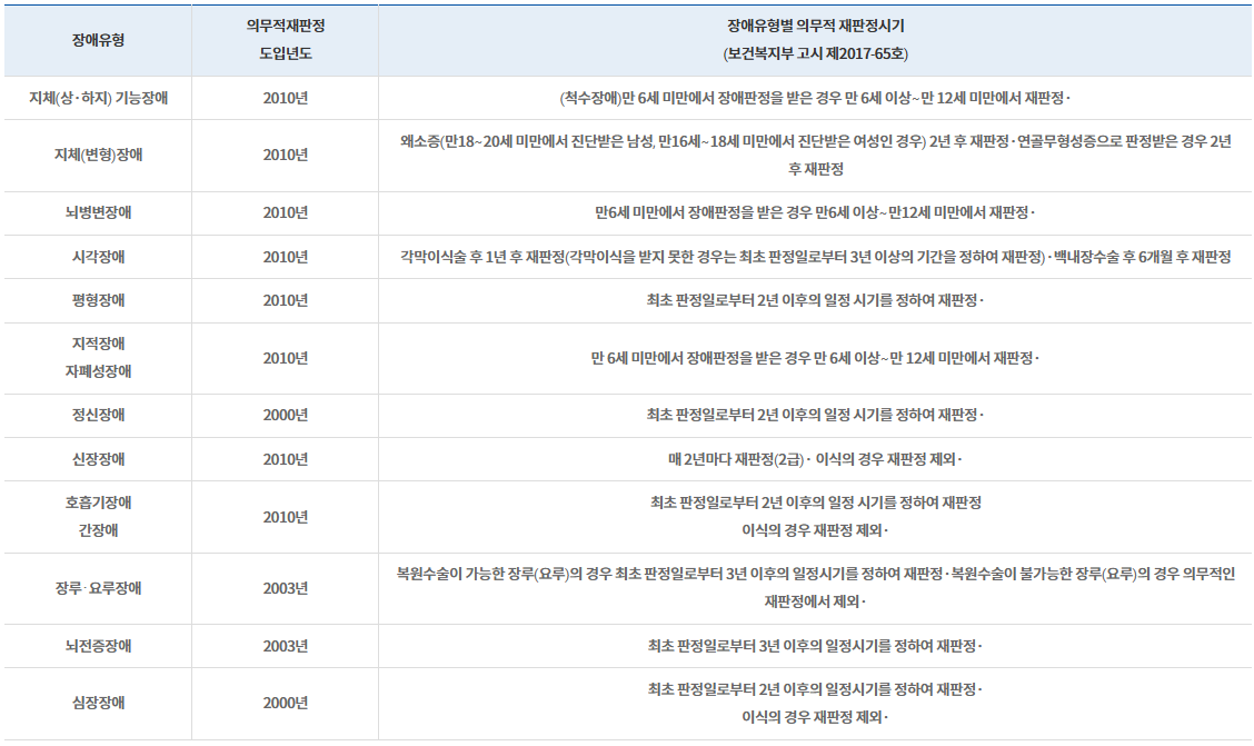 ※ 장애인등급심사는 2011년부터 모든 등급의 장애인이 받아야 합니다·