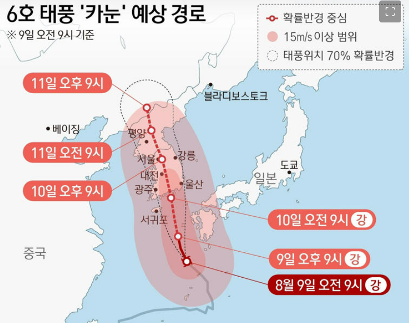 <6호 태풍 '카눈'의 예상 경로>